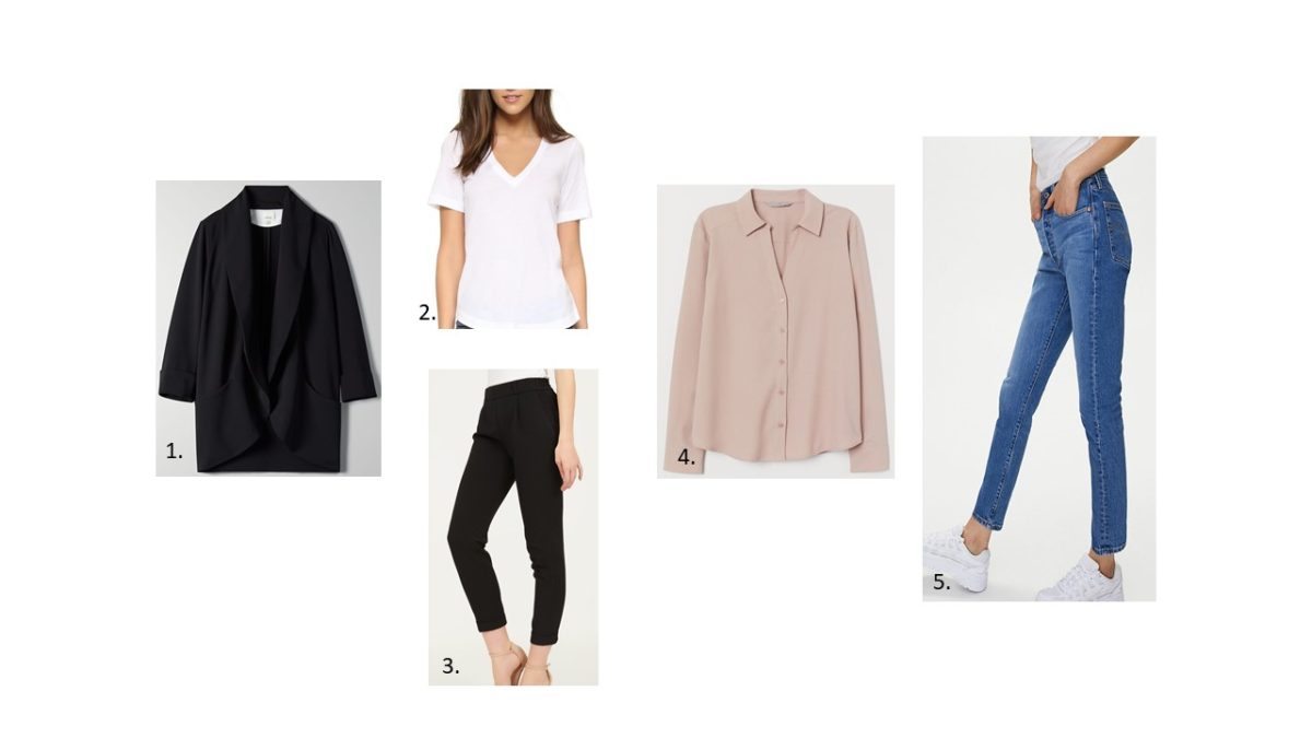 Part 1: There are many benefits to working from home, some of them being a flexible schedule, not having to fight traffic during rush hour, and being able to wear whatever you want to wear. When you don’t have to go to an office every day, you can stay in your pajamas or put on some sweat pants and an old tee and work from your couch. You don’t even need to shower or do your hair or makeup. Heck you don’t even have to wear PANTS or a BRA if you don’t feel like it! But just because you CAN, doesn’t mean you SHOULD. A dress code might seem silly when you work from home but research shows that your appearance plays a huge role in your productivity. What you wear impacts your day and dressing professionally during office hours can help create a separation between your working hours and your personal life/activities. Getting dressed in the morning gets you in the work mindset and helps you get ready for your day, setting the stage for what’s to come in the next 8 or so hours. Now I’m not saying you should put on a shift dress and high heels Monday to Friday when your alarm clock goes off. No, I want you to be comfortable. But “comfortable” doesn’t have to mean lululemon sweatpants and a hoodie. I want you to put on an outfit in the morning that you’d be confident wearing while going to the grocery store (minus the face mask and gloves) knowing you will be running into your ex. Get my drift?? Below are my top 5 mix-and-match pieces that will make you feel put-together, confident, stylish and ready to work!