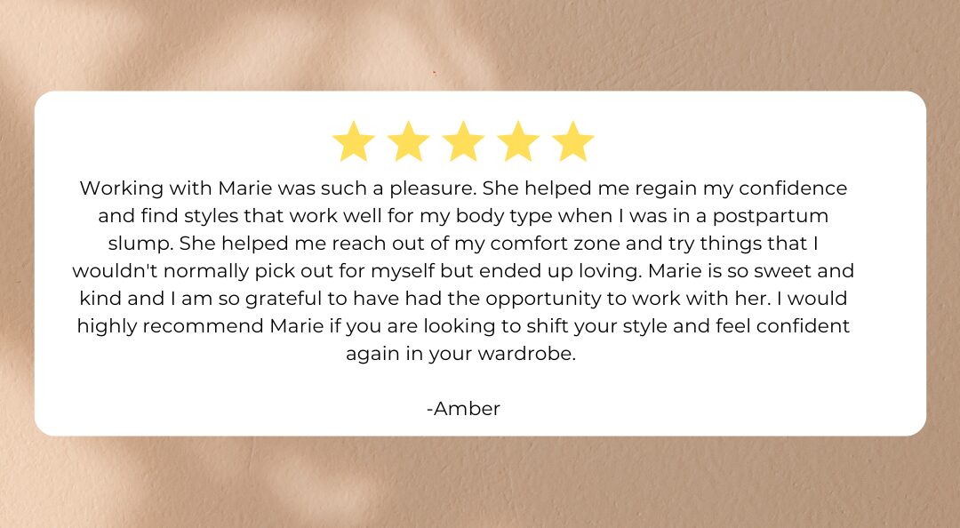 Do you buy items of clothing online because you saw a targeted ad online and/or they were recommended by an influencer on social media but when they arrive in the mail and you put the clothes on they don’t look right on you? Or maybe you’re wearing clothes you THINK you should be wearing but don’t feel like YOU? Don’t worry, it’s not YOU, it’s the clothes. And that you don’t know what your personal style is. It’s time for style clarity! This virtual package is an introductory service for the woman or man who needs help finding and defining their style and creating a wardrobe they love – one that makes sense to them and their lifestyle.