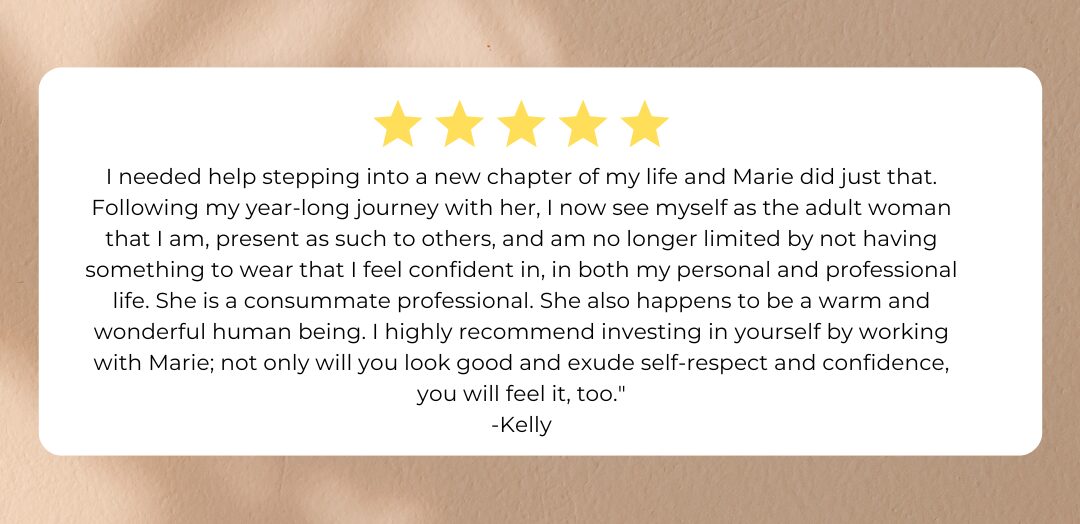 Life transitions are opportunities for fresh starts. How we show up during these transitions is important and affects how we feel about ourselves and how we show up in our lives and for others every day. Creating and having a personal style – one that is truly authentic to you – is a great tool to take with you into this next chapter of your life! I have helped hundreds of clients all over the world master the art of dressing so they feel confident moving forward.